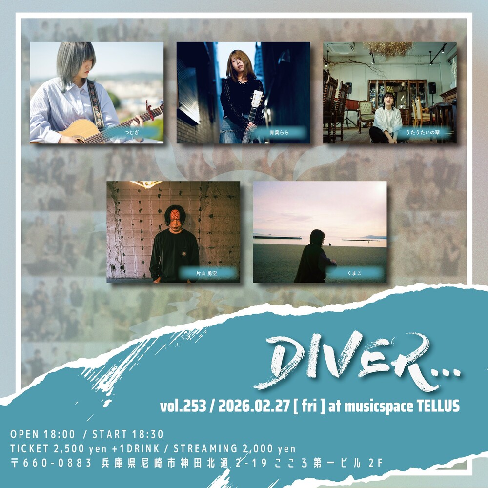 DIVER...vol.253 SCHEDULE 2026/02/27(金) - 2026/02/28(土) musicspaceTELLUS OPEN 18:00 / START 18:30 TICKET ¥2,500 出演時間♫19:30〜 w/ つむぎ / 青葉らら / くまこ / 片山勇空 配信こちら! URLをコピーする 報告する